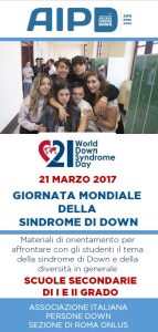 Aiutare le scuole a parlare di sindrome di Down o, più in generale, di inclusione delle differenze, questo l’impegno del Servizio Scuola di AIPD Roma in occasione della Giornata Mondiale della Sindrome di Down.