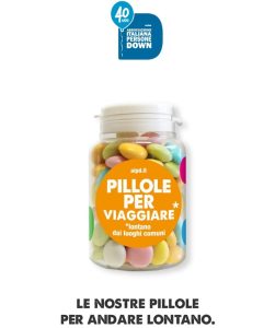 Per sostenere le attività dell’Associazione verranno distribuite, a fronte di un contributo minimo di 5 euro, il barattolino di “pillole per viaggiare” contenente confetti di cioccolato.