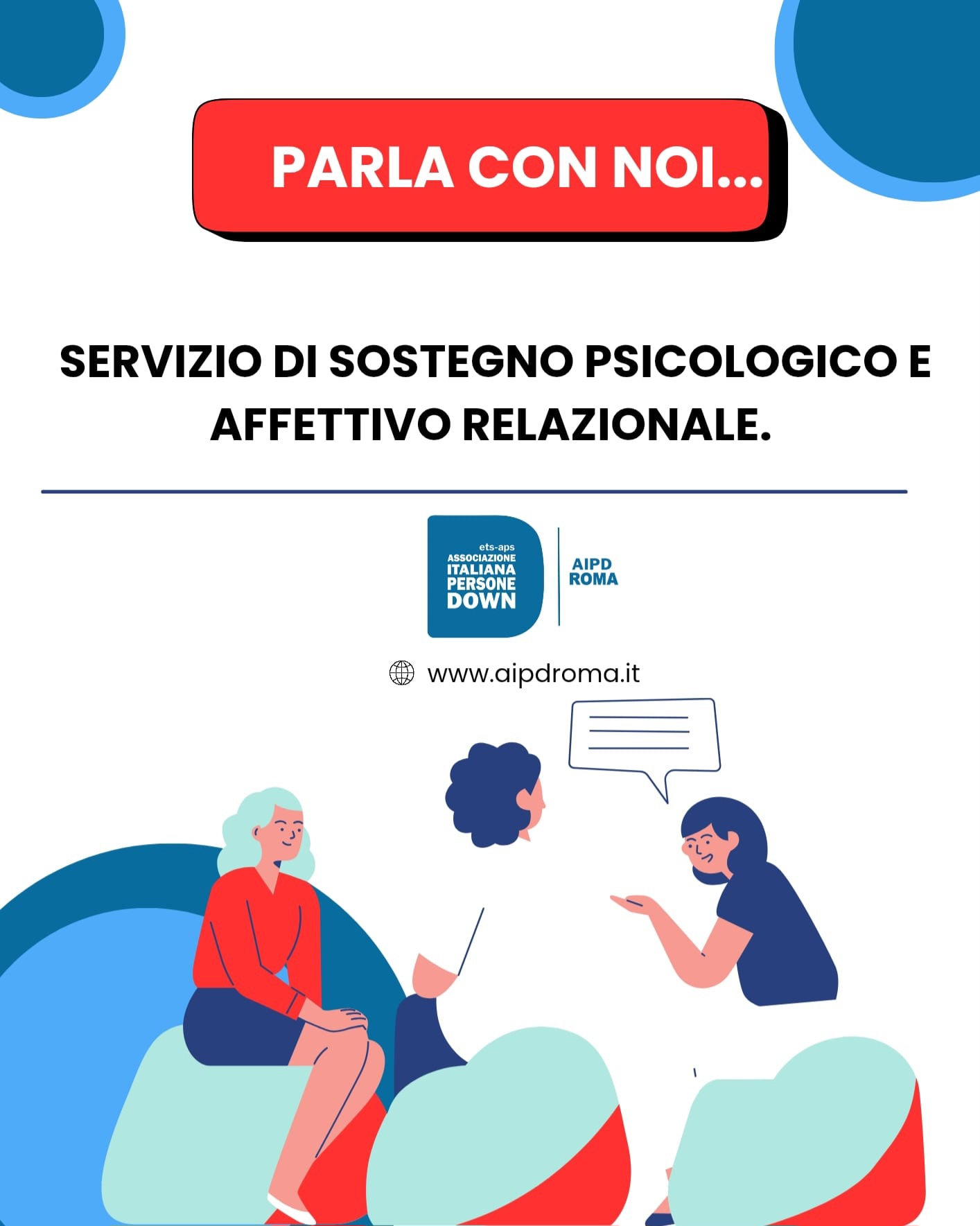 o scrivi una mail a info@aipd-roma.it con oggetto: richiesta SERVIZIO PSICOLOGICO.