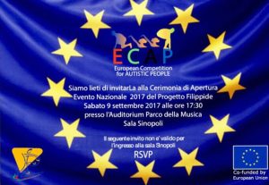 La sezione AIPD di Roma ha ricevuto con piacere l’INVITO a partecipare sabato 9 settembre 2017 alle ore 17:30 alla Cerimonia di Apertura del Progetto Filippide che coincide con la fase conclusiva dell’ECAP (European Competition for Autistic People – vincitore del Bando Erasmus Plus).