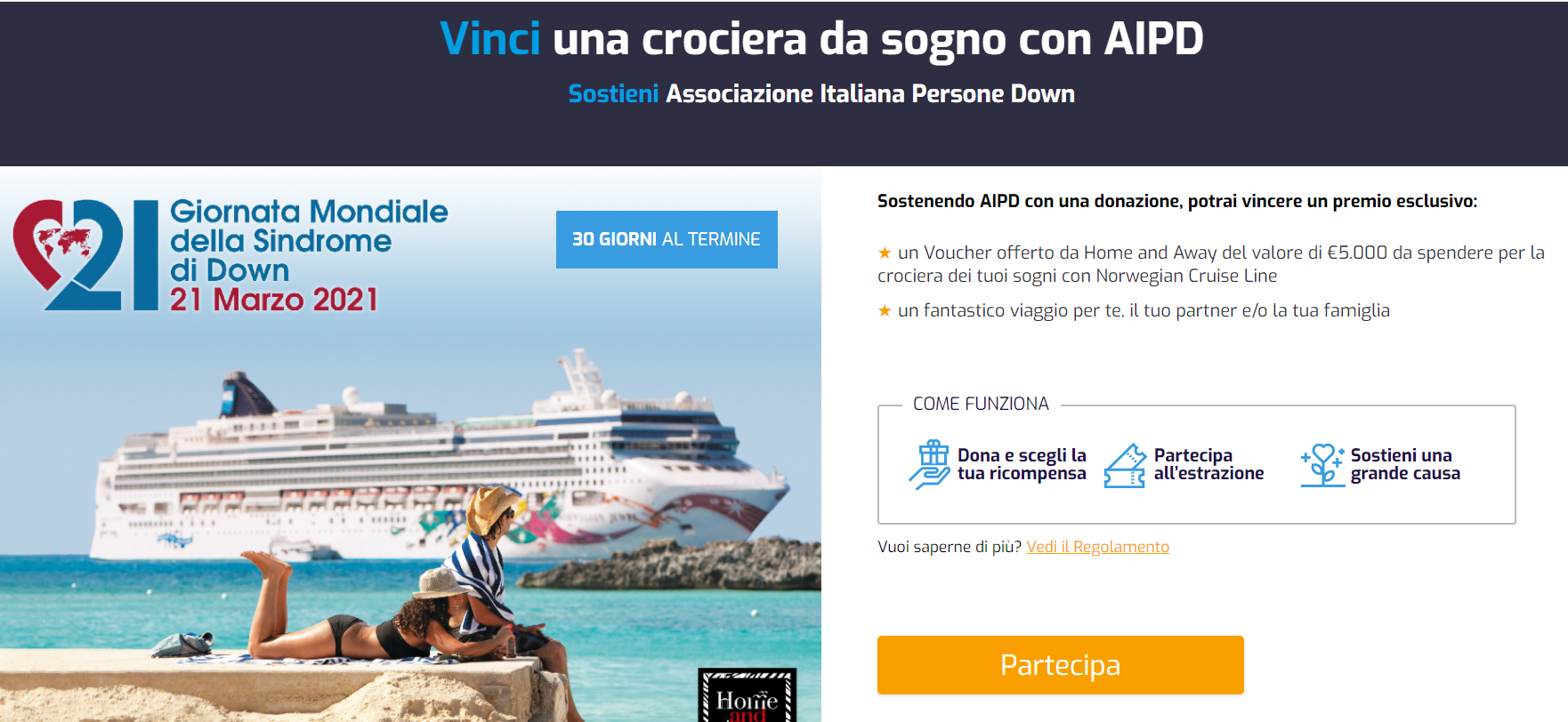 Insieme alla campagna di comunicazione AIPD lancia anche un contest solidale: attraverso la piattaforma Wishraiser sarà possibile destinare una donazione alla sezione AIPD Roma e partecipare all’estrazione di un grande premio finale.
