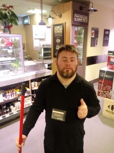 Stefano lavora come scaffalista, si occupa di sistemare la merce negli scaffali e tenere in ordine il negozio.